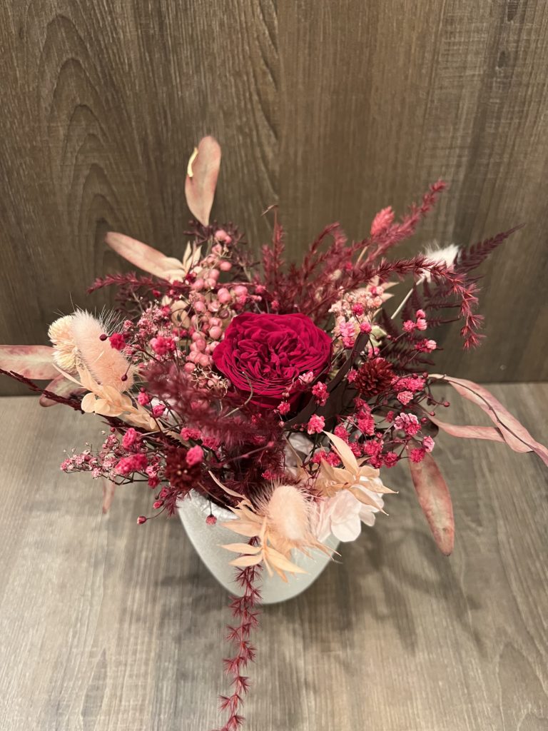 Dans le menu sous l’onglet « Boutique en ligne« , vous trouverez des créations en fleurs séchées et stabilisées ainsi que des créations de fleurs éternelles en papier.