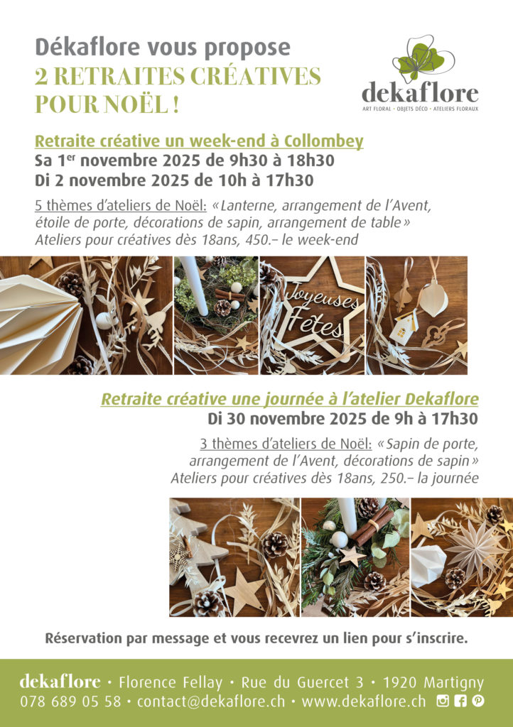 Dékaflore vous propose 3 ateliers créatifs de Noël hors retraites créatives: