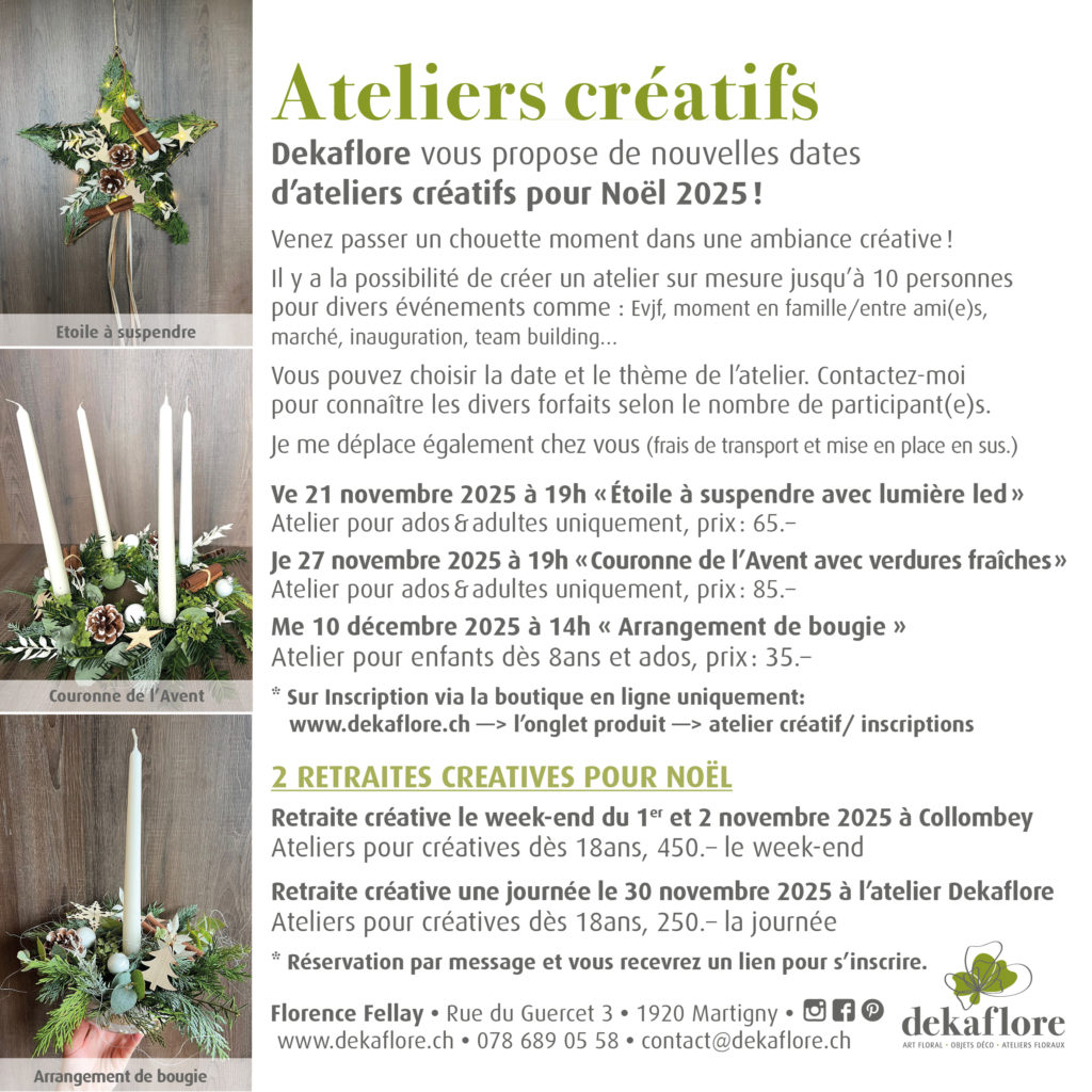 Dékaflore vous propose 3 nouvelles dates d’ateliers créatifs pour Noël 2026