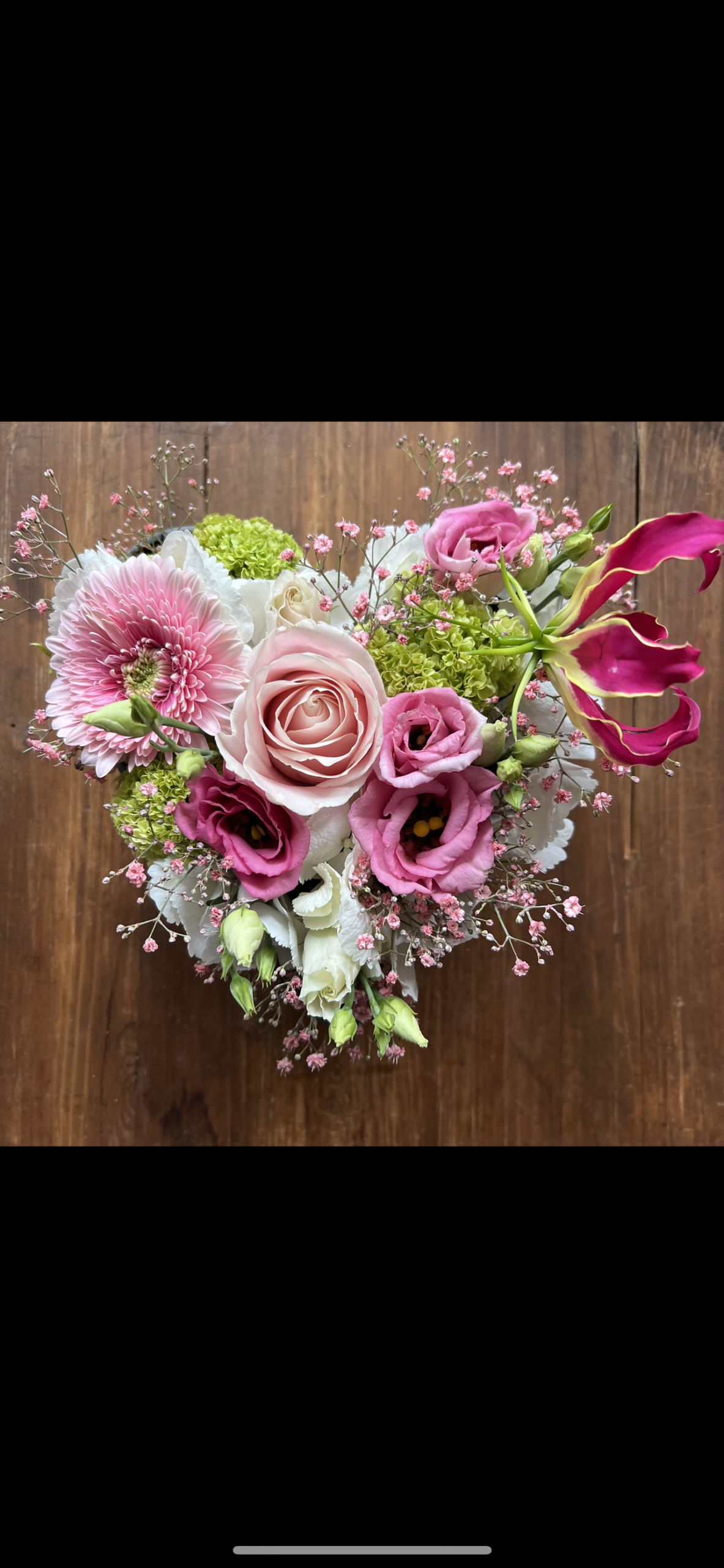Venez partager un moment créatif afin de réaliser votre arrangement « Coeur avec fleurs fraiches »,dans une base en forme de coeur avec des verdures et fleurs fraîches.