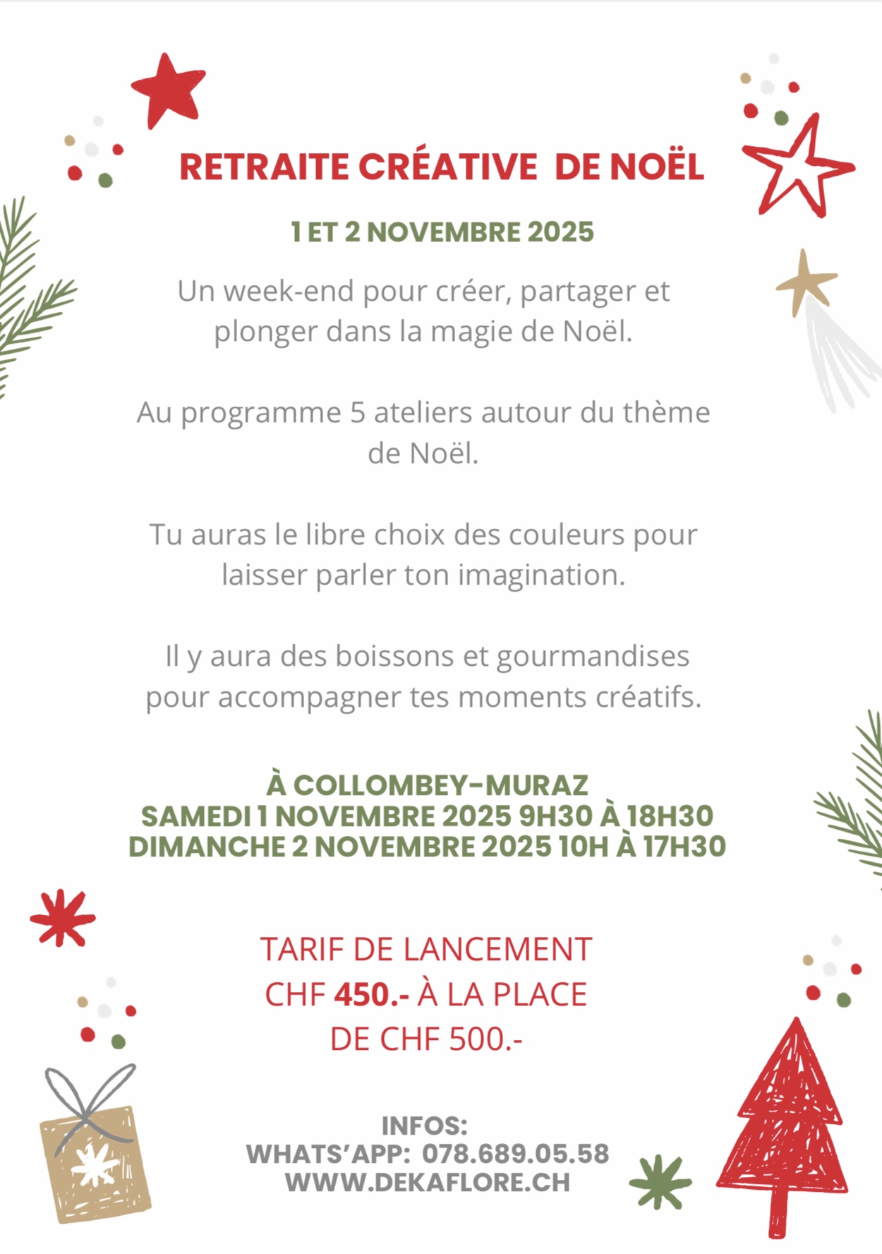 Validation de votre place à la retraite créative du 1/2 novembre 2025 en payant la totalité du montant en 1x.